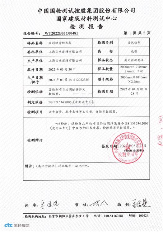 波形沥青防水板-检测报告