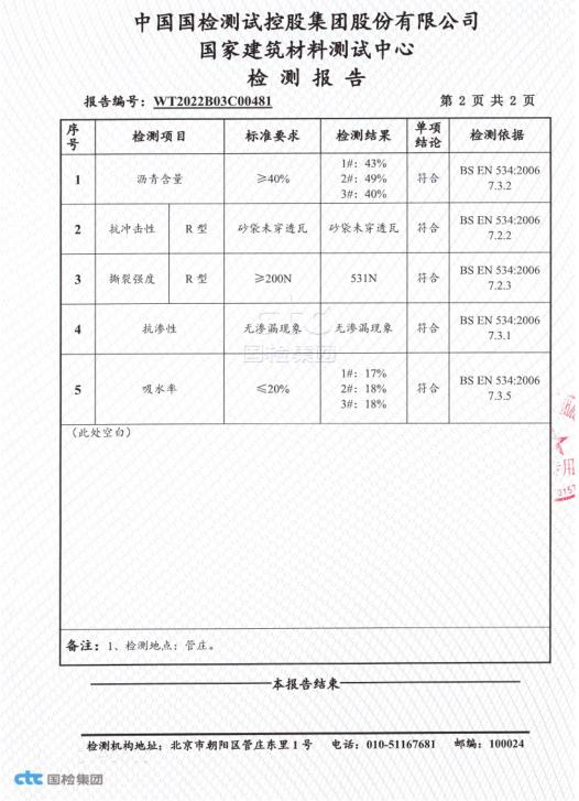 陶感三维沥青瓦-检测报告