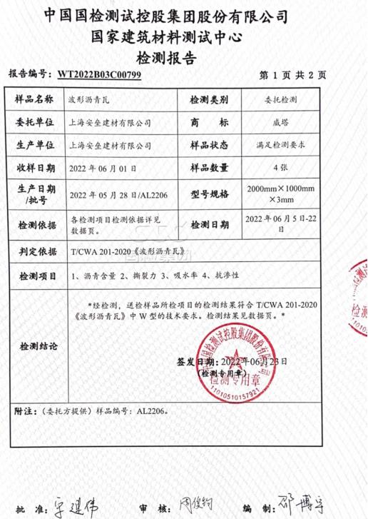 波形沥青瓦检测报告2
